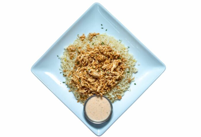 Creamy white cheddar macaroni and cheese topped with pulled chicken, diced jalapeños, and toasted bread crumbs. This high-protein meal is a great lunch or dinner. - 627Cal36gProtein42gCarbs35gFat