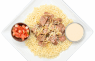 ALL-NEWThink of your favorite cheeseburger in a bowl: Tater tots topped with seasoned ground beef, melted fiesta cheese, diced onion, and tangy pickles, served with our version of a Fit Five Mac sauce! It’s a hearty, deconstructed Big Mac without the bun.