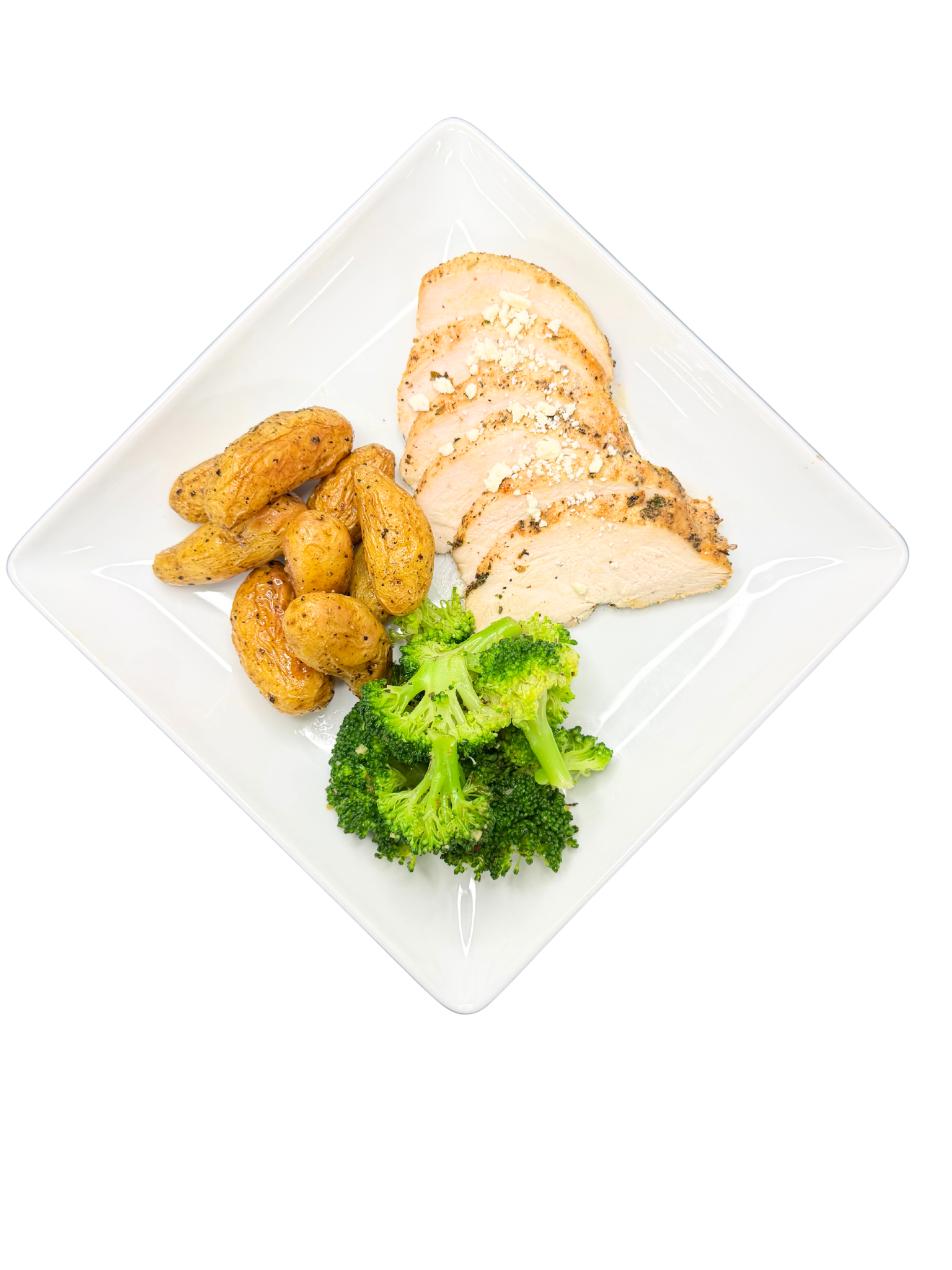 INGREDIENTS: POTATOES, CHICKEN, BROCCOLI, FETA, OLIVE OIL, SEASONINGS.