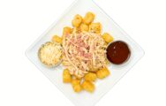 INGREDIENTS: TATER TOTS, ALL-NATURAL CHICKEN BREAST, TURKEY BACON, CHIPOTLE SEASONINGS (SIDE SAUCE: HONEY HOT, FAJITA CHEESE BLEND )