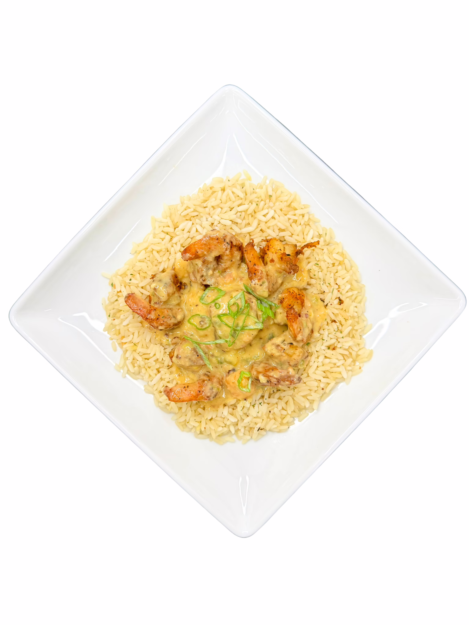 INGREDIENTS: SHRIMP, PORK TASSO, WHITE RICE, CHICKEN BASE, PEPPERS, GREEN ONIONS, SEASONINGS