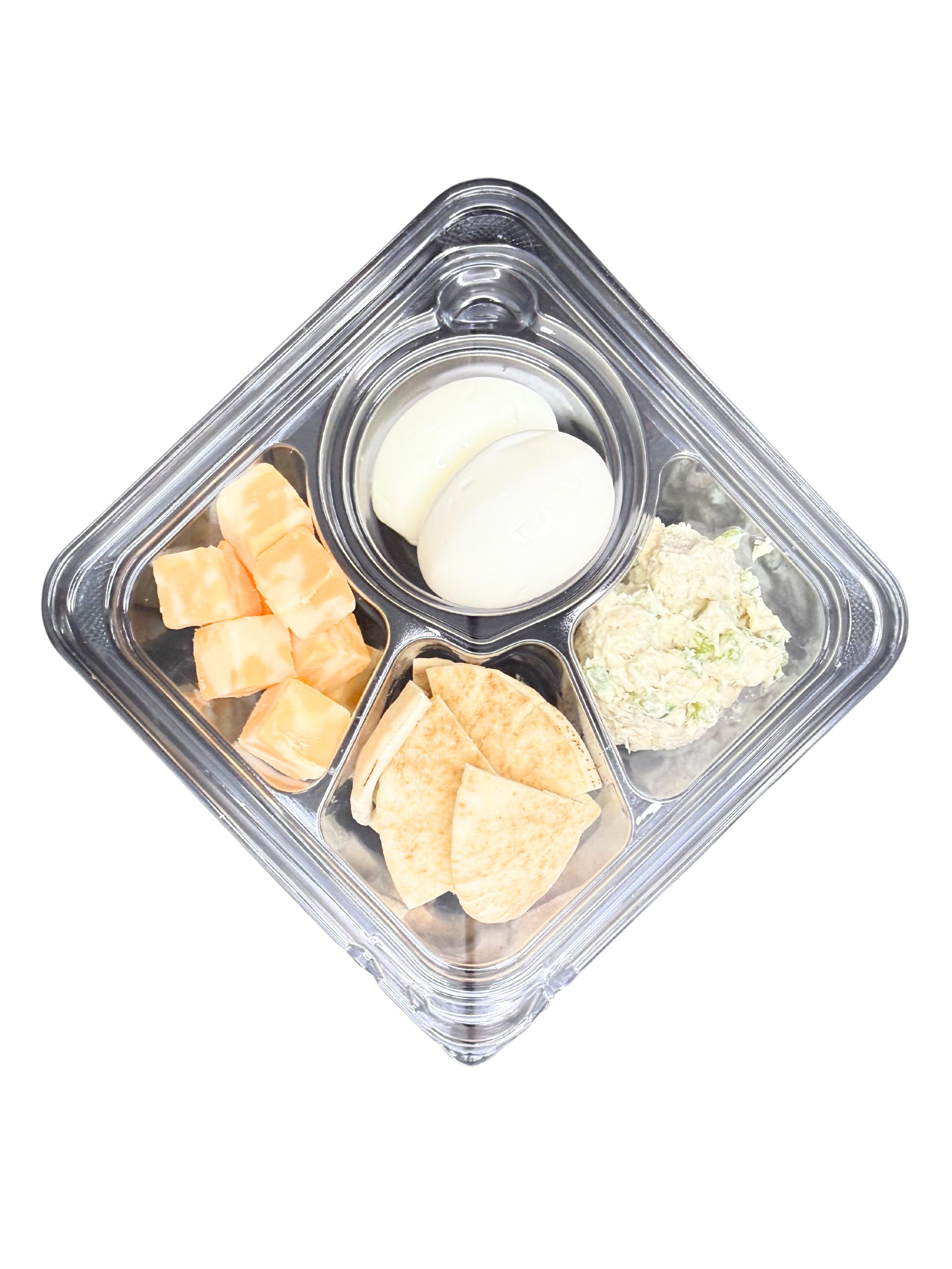 INGREDIENTS: EGG, CHEDDAR CHEESE, PITA, CHICKEN SALAD